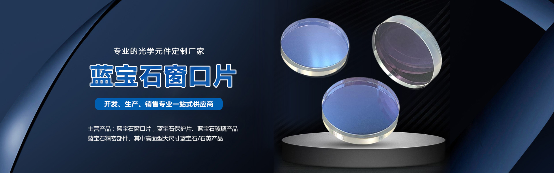 主營:藍(lán)寶石窗口片,藍(lán)寶石保護片、藍(lán)寶石玻璃產(chǎn)品